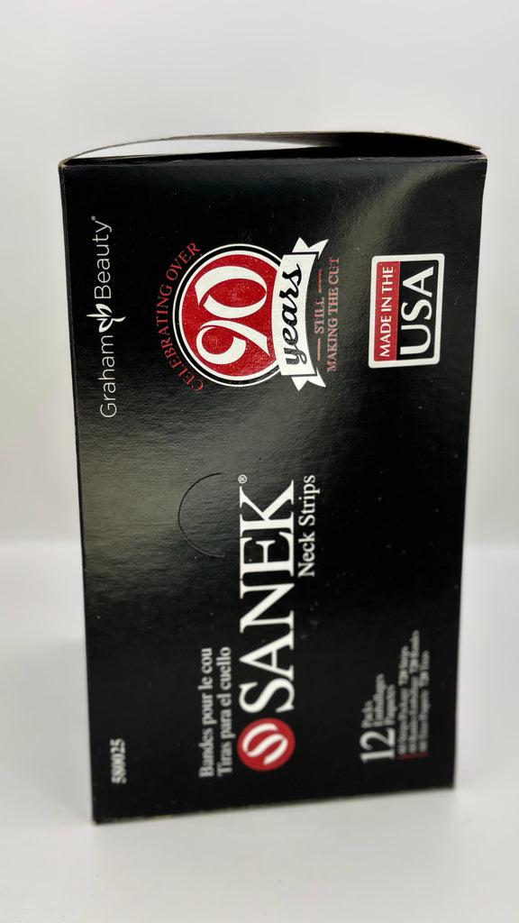 Sanek Neck Strips are disposable, absorbent tissues used in barbershops and salons to provide a hygienic barrier between a client's neck and the hair-cutting cape. They catch loose hair, absorb perspiration, and are an economical way to maintain cleanliness. In most states, their use is required by law to prevent cross-contamination from soiled capes touching the skin.