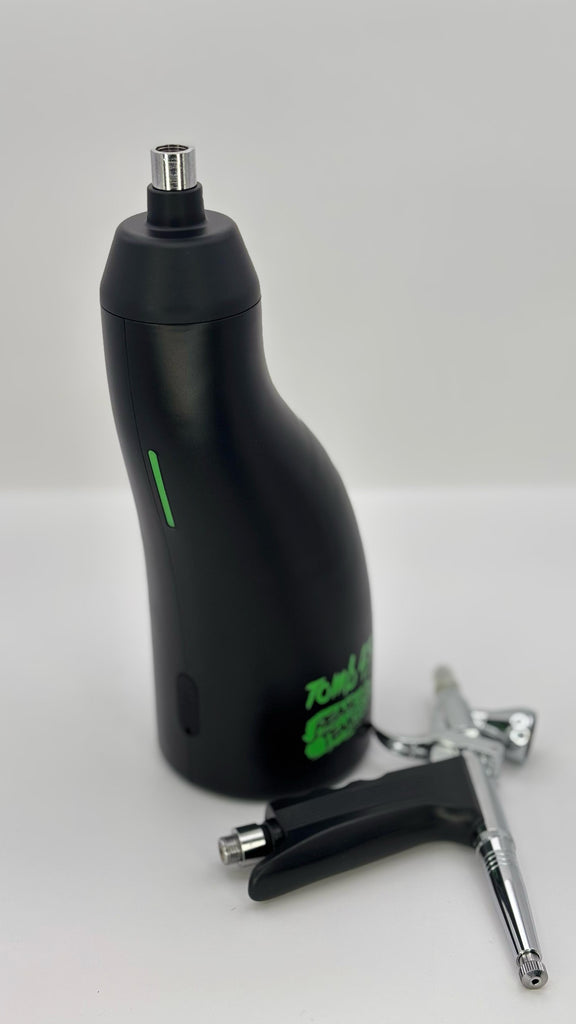 Accessories: It typically comes with an upgraded trigger airbrush and works well with Tomb45's "No Drip" color enhancements.