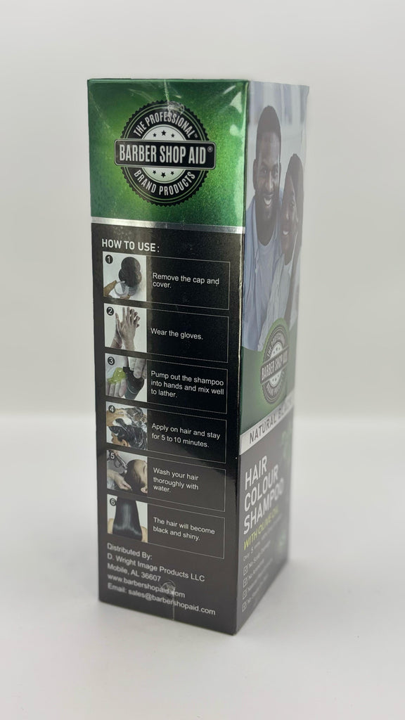 Barber Shop Aid Natural Black Hair Colour Shampoo With Olive Oil. It is designed to cover grey hair in just five minutes and is available for purchase from various online retailers.  Product Details & Key...