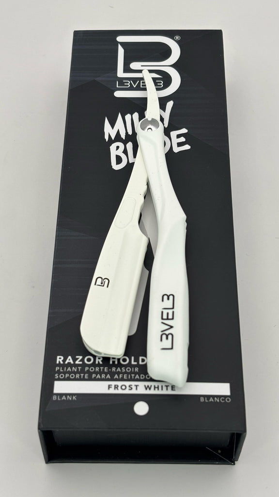 L3VEL3 Milly Clutch Razor Holder in the color Frost White. This is a professional-grade barber tool designed to hold double-edge razor blades (not included).