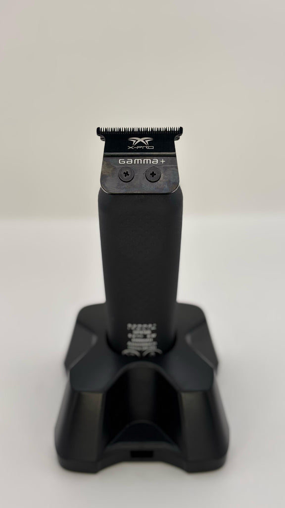 The device you are viewing is the Gamma+ XCEED Professional Trimmer, a high-performance, cordless grooming tool designed for barbers and stylists.